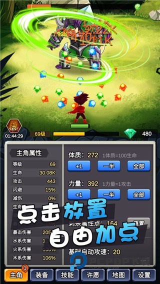 全攻击力(不是你死就是我亡,输出高装备掉落多,分解的钻石多,重置属性点看一次广告就行)。