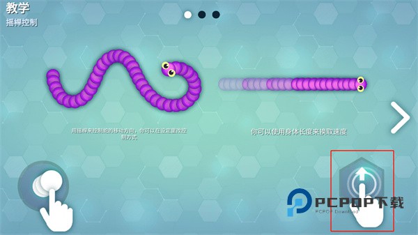 3、左边摇杆,控制小蛇游动的方向,右边是加速按钮。