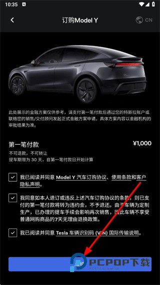 3、选定车型版本后,点击页面底部的立即下单按钮,进入订购协议确认环节。