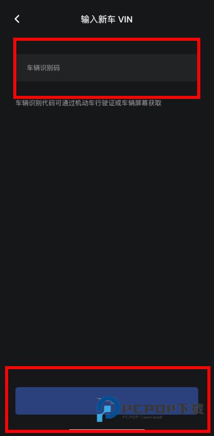 4、在输入新车VIN界面,准确输入车辆识别码,输入完成后点击下一步,按照后续提示完成车辆绑定操作。