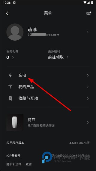 2、在菜单页面中,点击充电选项,进入充电页面。
