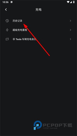 3、在充电页面中,点击历史记录选项,进入历史记录页面。