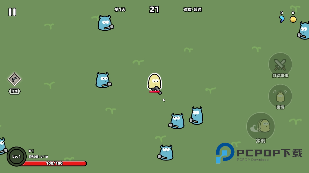 6、全部选好后就会开始,滑动屏幕可以控制角色移动,点击右边攻击按键可以自动攻击。