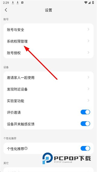 3、在设置界面中,找到系统权限管理选项并点击,进入系统权限管理页面。