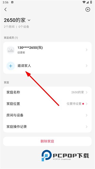 3、在家庭管理页面点击邀请家人选项,进入家人权限选择页面。