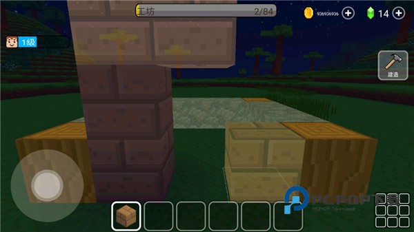1、进入方块世界3D游戏后,首先需要在地面上建造一个工坊;