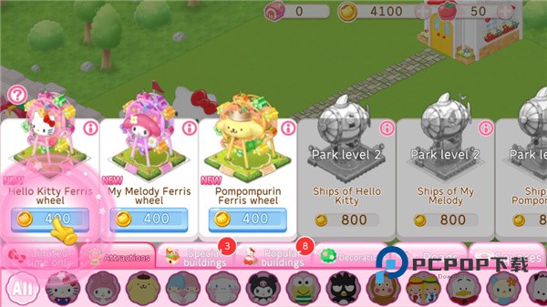 凯蒂猫世界2最新版是凯蒂猫世界的延续作品,这是一款画面超级可爱的休闲养成手游。没有人能够拒绝三丽鸥,没有人能够拒绝凯蒂猫!这款游戏对我们这些三丽鸥死忠粉来说简直就是巨大的福利,玩家将在这些小可爱的帮助下共同建造一个可爱无比的三丽鸥主题公园,整个游乐场都是三丽鸥。从娱乐设施到头像主题,从美食到角色服装都完美贴合了三丽鸥主题,这不就是你梦想中的天堂吗?玩家可以在游戏中尽情的装扮游戏角色,凯蒂猫世界2最新版中细节刻画就连服饰都是以三丽鸥为原型的,换上可爱的新衣服来迎接游乐园的新客人吧。在游乐园正式开张之前,要准备好游玩设施最关键的设施那一定就是摩天轮了,建设好以后就可以开始运行。玩家每次升级完成都会收到丰厚的奖励,大家可以利用这些奖励来更好的建造游乐园。欢迎感兴趣的朋友们在本站下载体验。