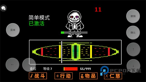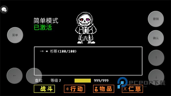1、下载并进入传说之下三重审判游戏主页,在左下角寻找到简单模式,勾选其即可;