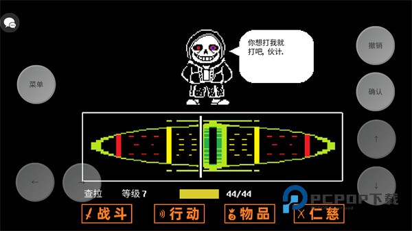 传说之下三重审判官方版是一款富有挑战性的暗黑风格躲避动作类手游。它有着新颖又独特的游戏玩法,抛开传统的人物模型主体,将游戏主角更换为一颗小爱心,玩家操纵小爱心来进行挑战,同时传说之下三重审判的挑战方式为回合制挑战,玩家需要通过移动小爱心来躲避boss的攻击,在boss的招式完全结束后方可进行回击,非常有趣味性。同时由于玩法原因,该游戏的正常难度可能对新人玩家具有一定的难度,因为该游戏需要高度的集中力与反应能力甚至是记忆力,而且也得玩家熟系boss招数,才能更好的躲避攻击,并顺利反击。