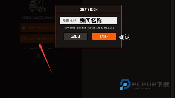 5、点击创建房间名并确认