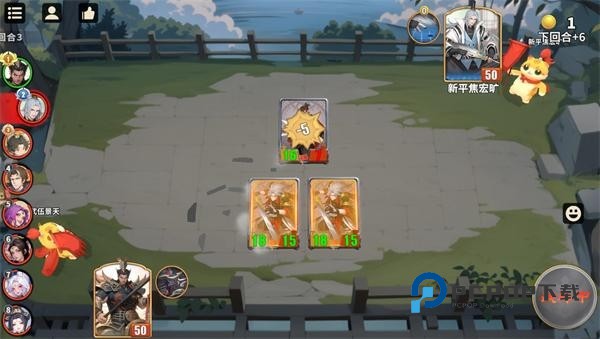 6、开始战斗后角色会自动攻击敌人,卡牌下方的数字是角色的攻击力和生命值。