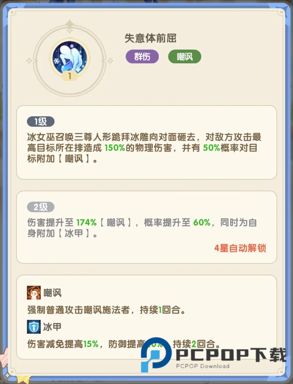 (1)核心优势:作为队伍的绝对前排,冰雪女王不仅有嘲讽技能,能够吸引敌方火力,还可以降低敌人攻击力,减轻队伍的承伤压力。