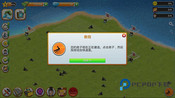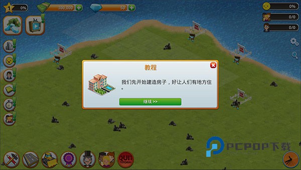 1、欢迎来到乡村城市模拟岛屿手游!您的任务是建造一座繁荣的城市。首先我们先开始建造房子,好让人们有地方住。