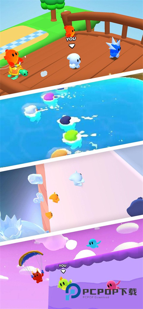 1、地图场景自由丰富,每个都有很多障碍。玩家需要在地图中做出各种动作才能快速过关。
