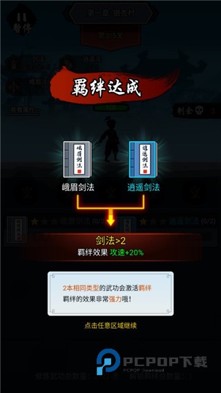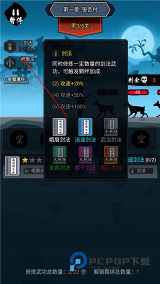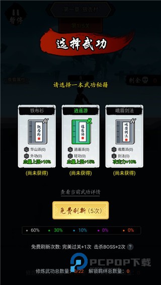 3、每次通过关卡都可以学习一个新的武学。
