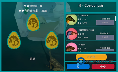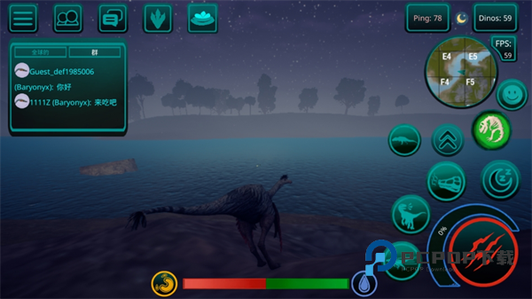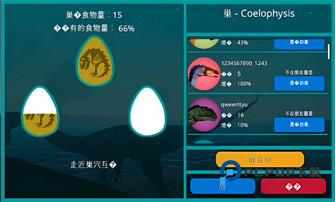 3、食物提取,如果恐龙是掠食者,那么你需要杀死其他玩家的恐龙才能得到自己的肉,如果你是草食动物,那么食物就更容易了,你需要特殊的蕨类植物,你可以得到足够的他们!地图上任意湖泊、水库都可以饮用。