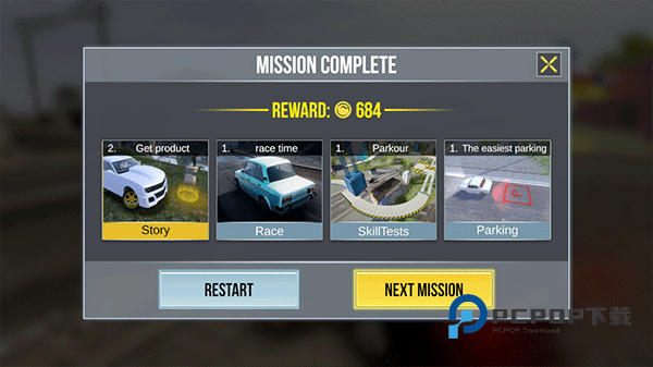 8、如图,完成任务并获得相应的奖励,可以解锁进入下一个故事剧情,游戏中还有各种各样的玩法和剧情等待玩家探索体验,以上就是madout2bco官方版的玩法了。