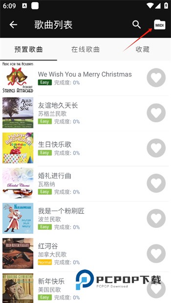 4、之后在这里就会展现出自己本地歌曲的目录,点击选择下方一个自己想要导入的歌曲,就可以对这首歌曲进行音乐的练习了。