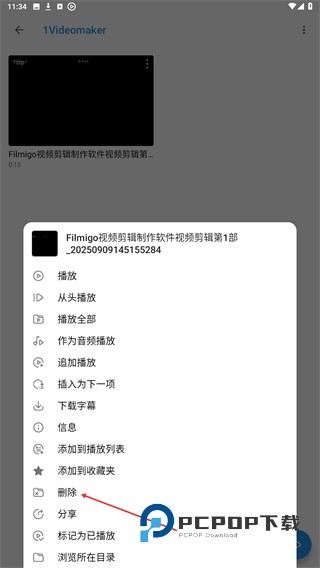 4、在下方弹出菜单栏中,点击删除的按钮即可删除成功。