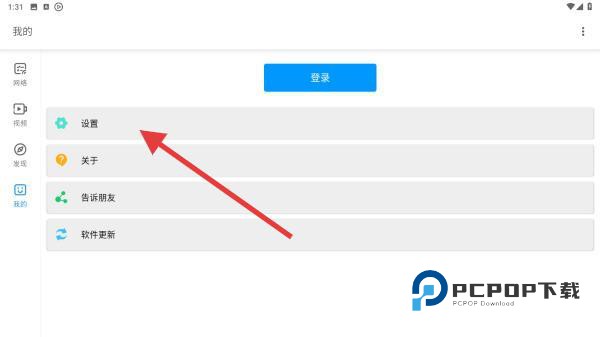 1、打开影音先锋APP,点击底部我的,再次选择设置的图标,参考界面箭头指引。