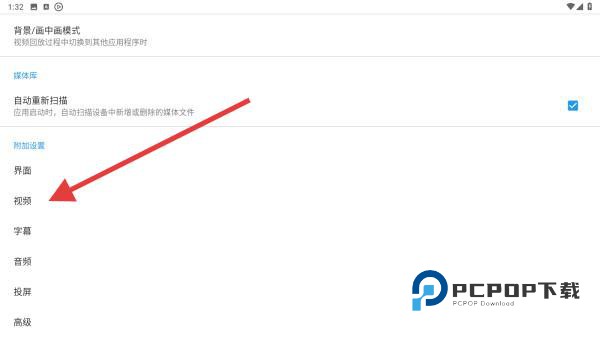 2、在设置列表中,找到并点击视频选项,通常在播放设置或画面设置的分类里。