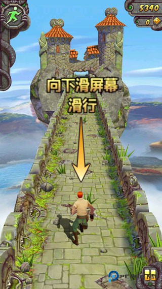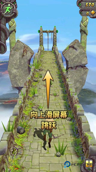 3、游戏中的悬崖区域切勿跳跃,这类区域基本都是岔路口,玩家只需向左或向右滑动屏幕,控制角色转弯,即可继续前行。