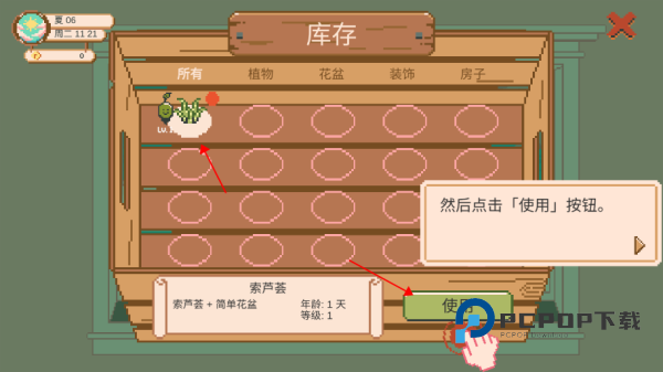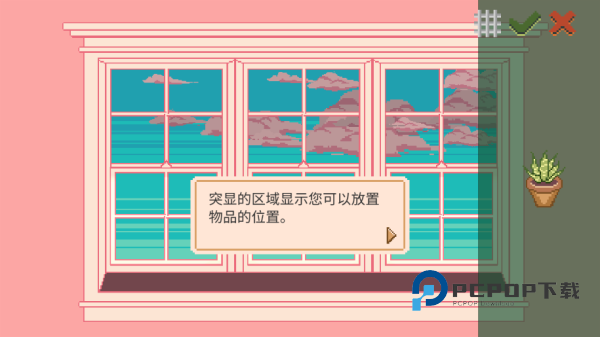 6、将植物移动至窗边,点击可打开窗户,你需要细心照料它,给它浇水,照太阳等