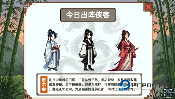 1、进入小小侠客模拟器官方版游戏,首先选择自己的出战侠客。