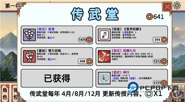 7、玩家可前往【传武堂】用铜钱购买技能。