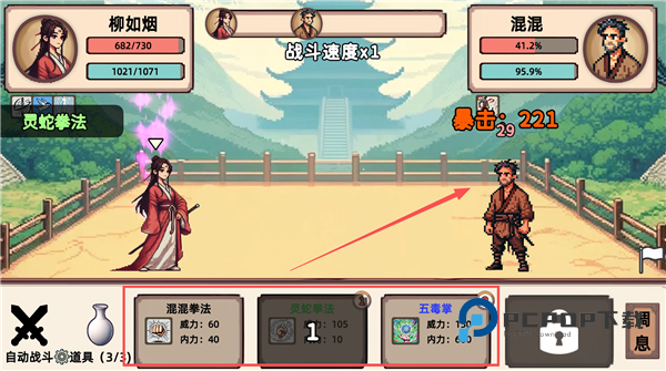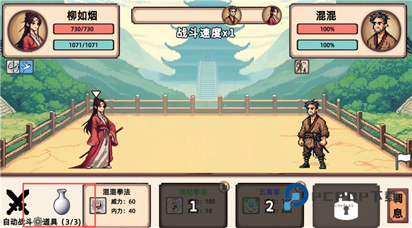 11、战斗中,玩家点击携带的武学对敌人进行攻击。