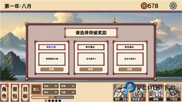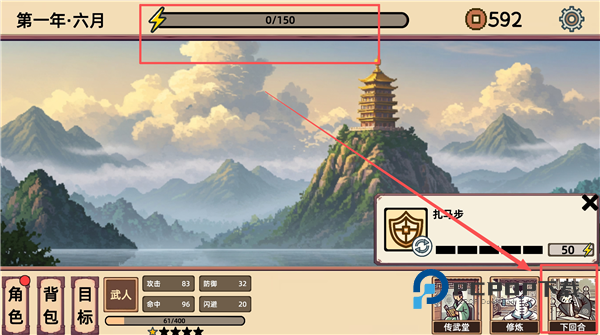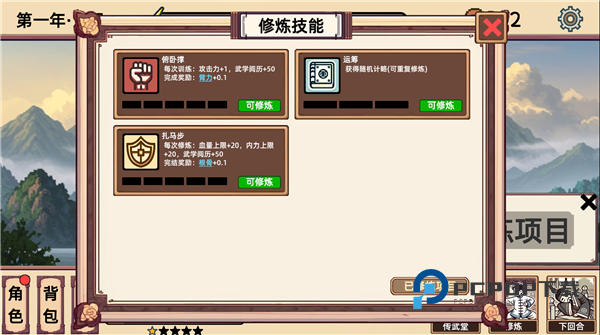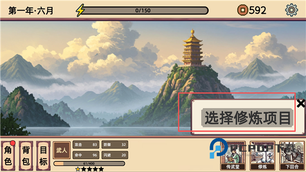 3、玩家每回合可以修炼武学,点击【选择修炼项目】。