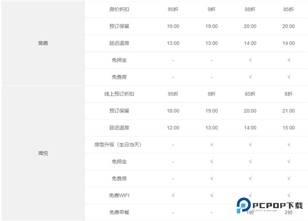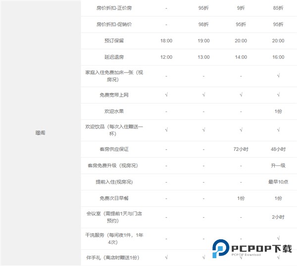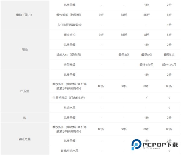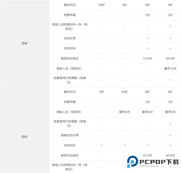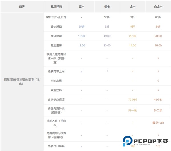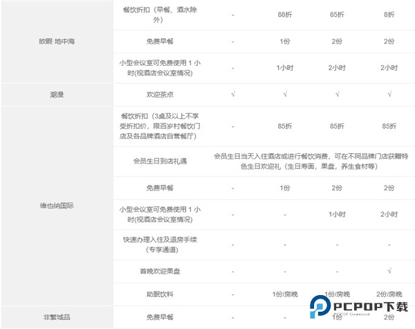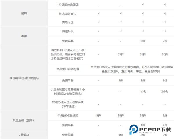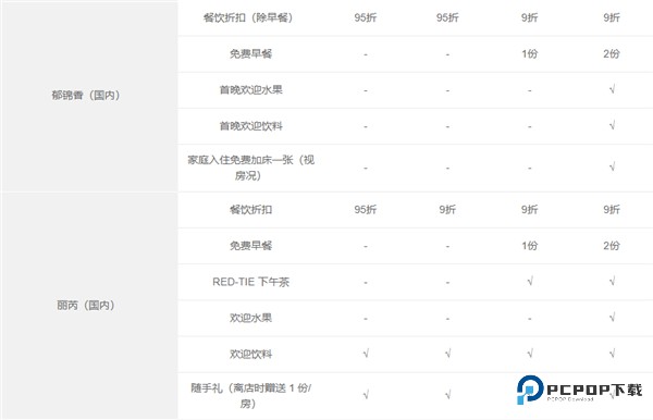 7、客房免费升级(权益明细中有该权益的品牌),需视客房状况并需由成员酒店来认定,仅在会员已是登记入住宾客时提供。