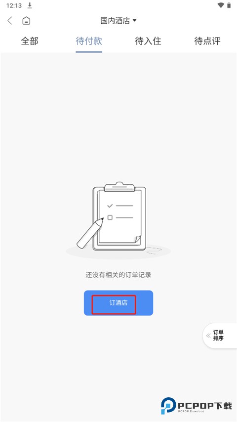 2、在到付款中点击订酒店;