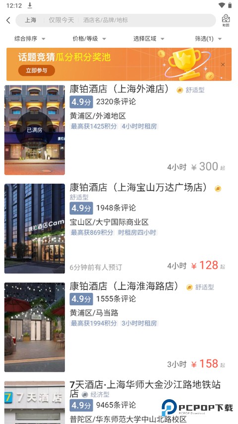 4、它会就会为用户提供拥有所有有钟点房的酒店,选择自己想要的酒店,点击进入;