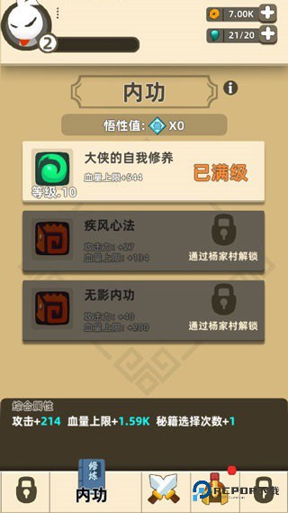 通过章节可以解锁新内功。