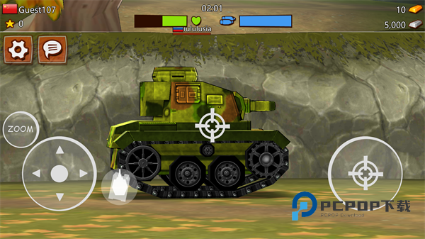 提供虚拟摇杆和重力感应双操作模式。虚拟摇杆采用动态跟随技术,可自动校准;重力感应模式经过多次陀螺仪校准测试,倾斜角度与坦克移动速度呈完美线性关系,玩家还可组合使用两种操作方式。