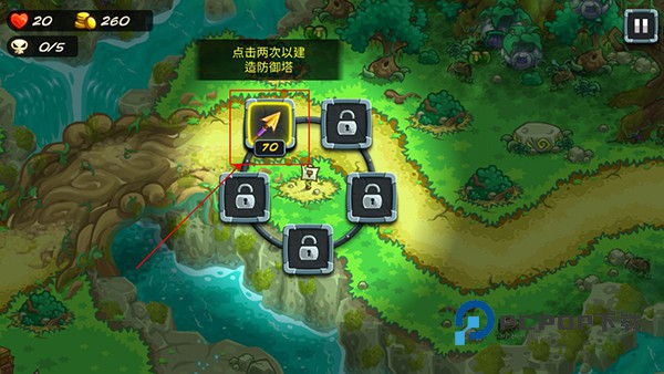 4、进入关卡后,玩家可以点击空地上的棋子进行防御塔建造。