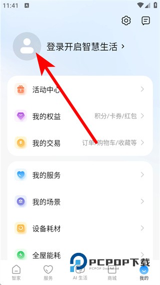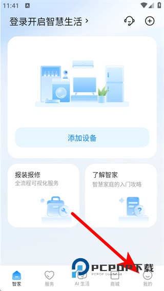 1、打开海尔智家APP,点击右下角我的,进入个人功能页面。