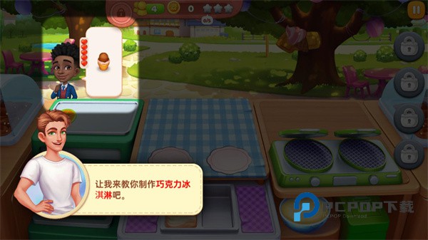 3、接下来就来熟悉游戏流程吧,首先是美食制作,以客户需求冰激凌为例