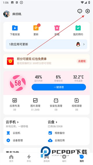 2、在我的页面中,找到并点击右上角的设置图标。