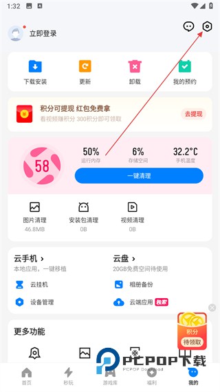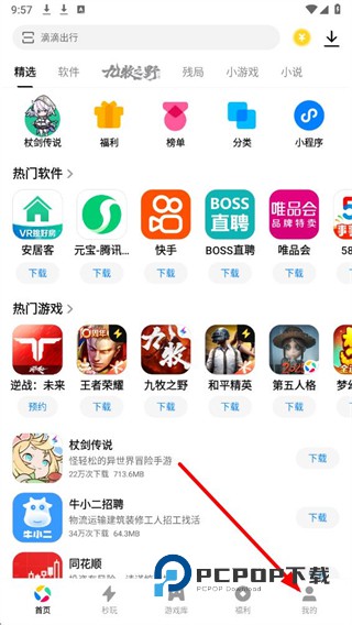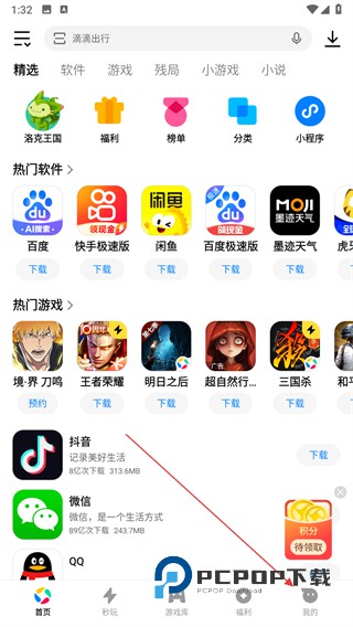 1、在应用宝首页,点击底部导航栏我的选项,进入对应页面。