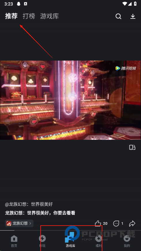 3、进入游戏库板块,可查看推荐、打榜等分类下的游戏内容,浏览游戏相关展示,若对某款游戏感兴趣,可进一步了解游戏详情,也能根据需要进行下载等操作。