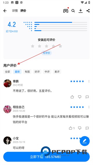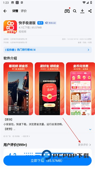 3、进入应用详情页面后,点击更多评价选项。