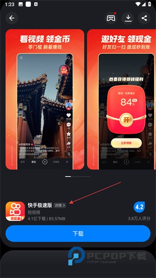 2、在应用页面,点击详情,即可进入详情页。