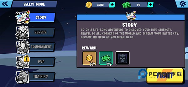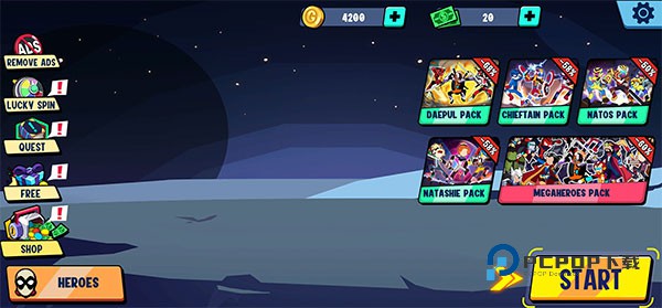 1、下载进入火柴人全明星乱斗游戏,点击START开始进行游戏;