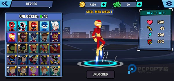 5、画面高清,角色超多的火柴人,都可以选择,使用各种武器,道具战斗。