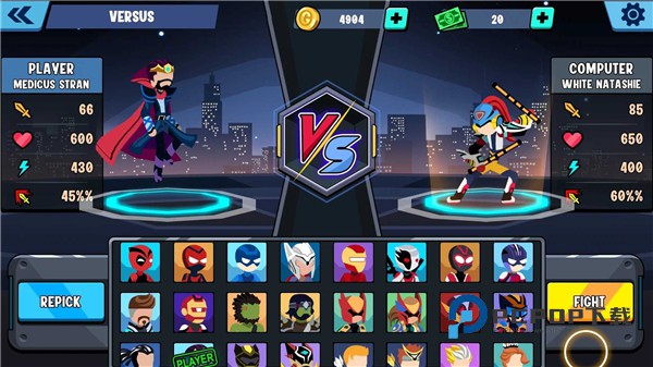 2、各种超级英雄角色都能选择,不同的能力和战斗方式让整个对战更加热血;
