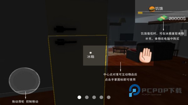 饥饿值低时,可在冰箱拿取食物补充,食物在电脑中购买