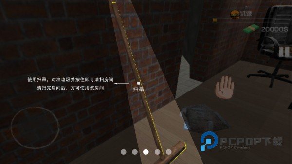 3、使用扫帚,对准垃圾并按住即可清扫房间清扫完房间后,方可使用该房间
