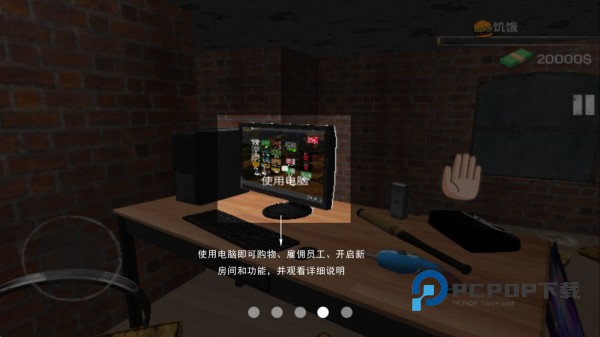4、使用电脑即可购物、雇佣员工、开启新房间和功能,并观看详细说明